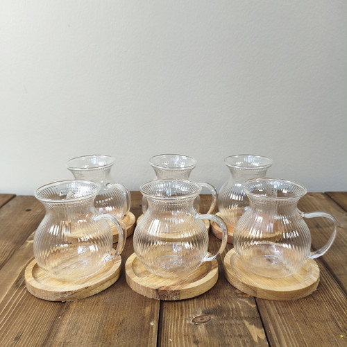 فنجان پیرکس 6 عددی مدل کمر باریک شیاردار