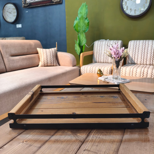 سینی چوبی دسته فلزی