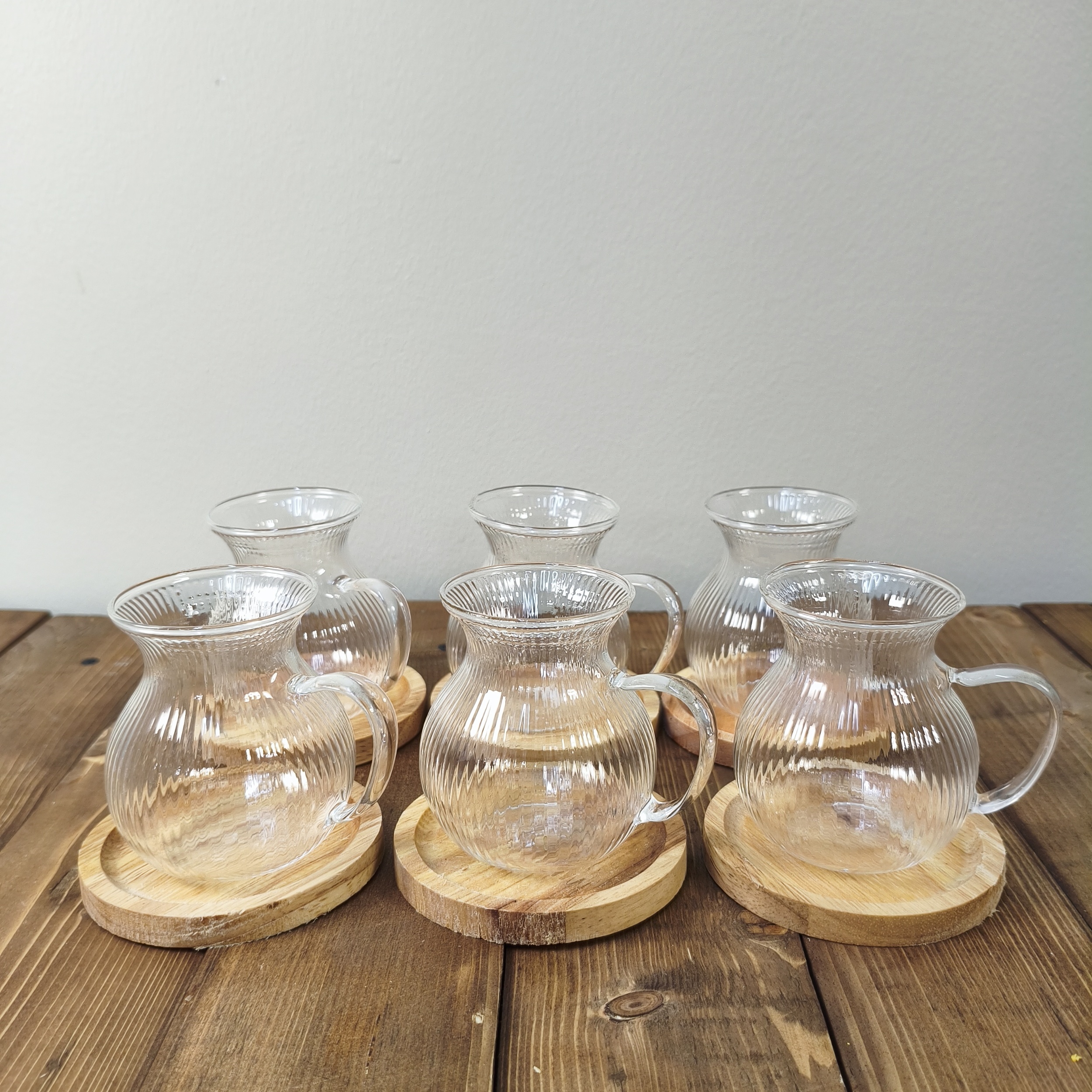 فنجان پیرکس 6 عددی مدل کمر باریک شیاردار