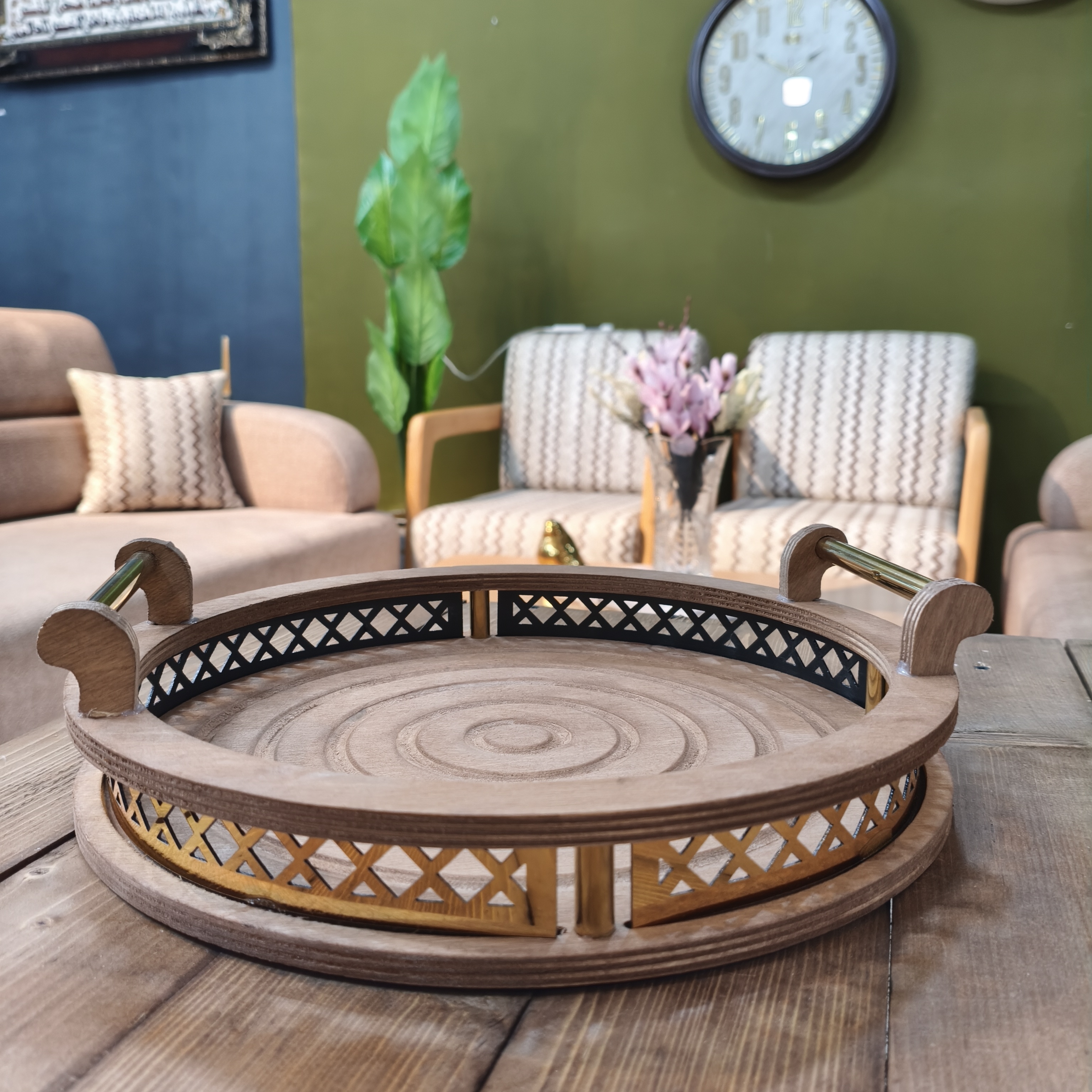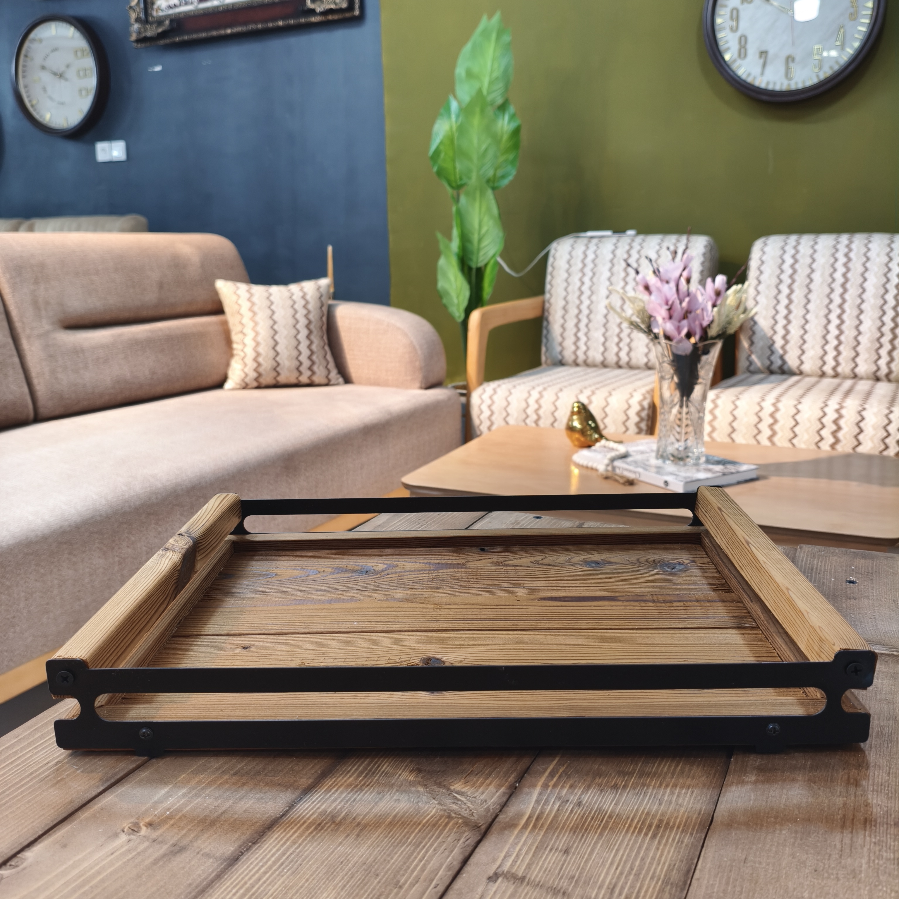 سینی چوبی دسته فلزی