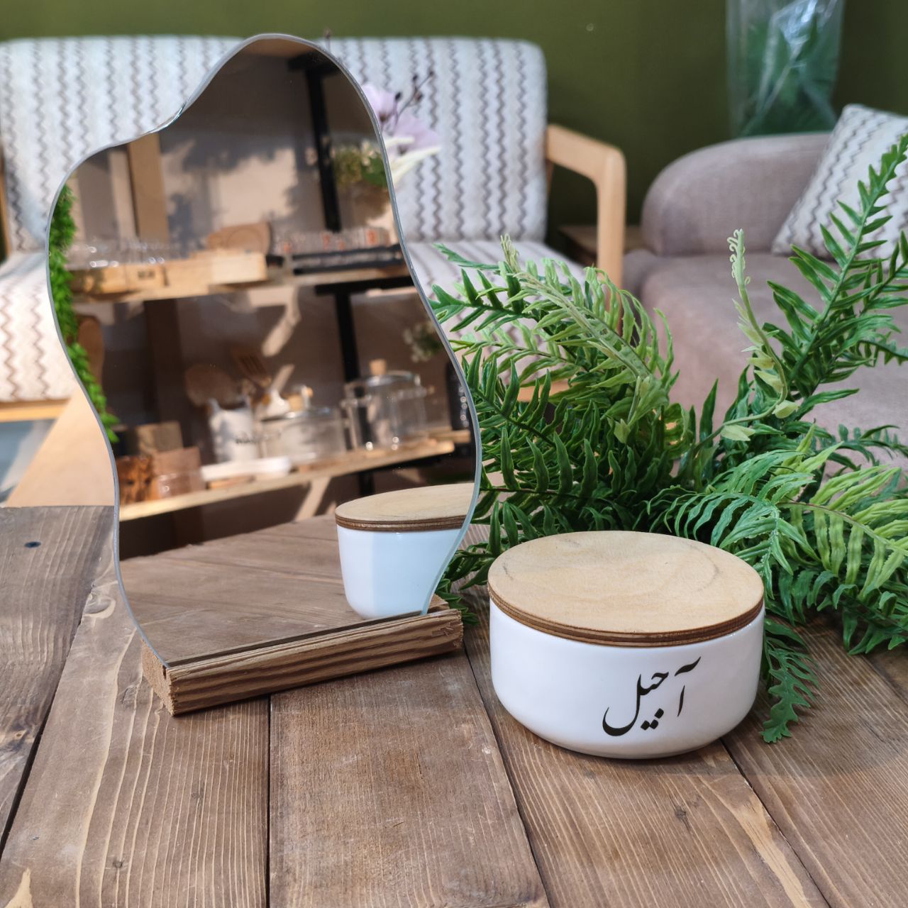 آینه دفرمه پایه چوبی