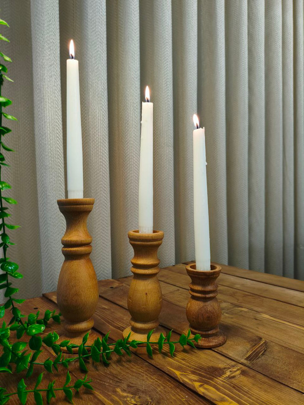 این ست سهتایی شمعدان چوبی دستساز با طراحی کلاسیک و تراشکاری ظریف، یک انتخاب بینظیر برای ایجاد فضایی گرم، رمانتیک و لوکس در خانه شماست. ساخته شده از چوب طبیعی مرغوب، این شمعدانها هم برای شمعهای وارمر (تیلایت) و هم برای شمعهای شمعی بلند مناسب هستند و جلوهای چشمنواز به دکوراسیون شما میبخشند.