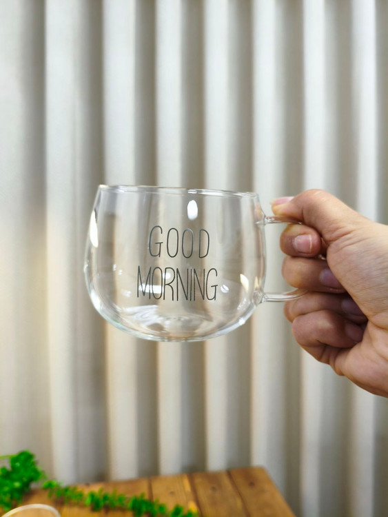 با این لیوان شیشهای شفاف و زیبا از جنس پیرکس، هر صبح را با انرژی مثبت آغاز کنید! نوشتهی جذاب "GOOD MORNING" به سبک مینیمال و حس شادی و تازگی را به لحظههای صبحگاهیتان اضافه میکند