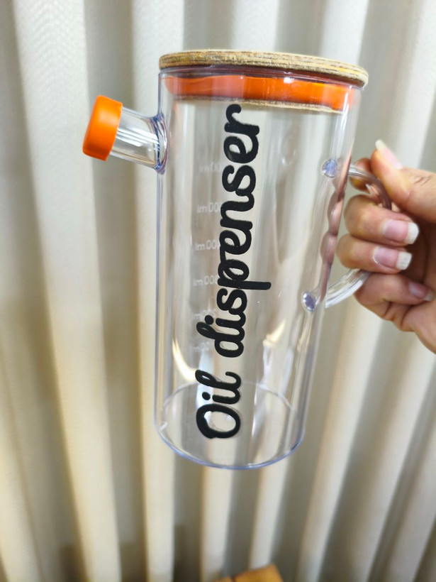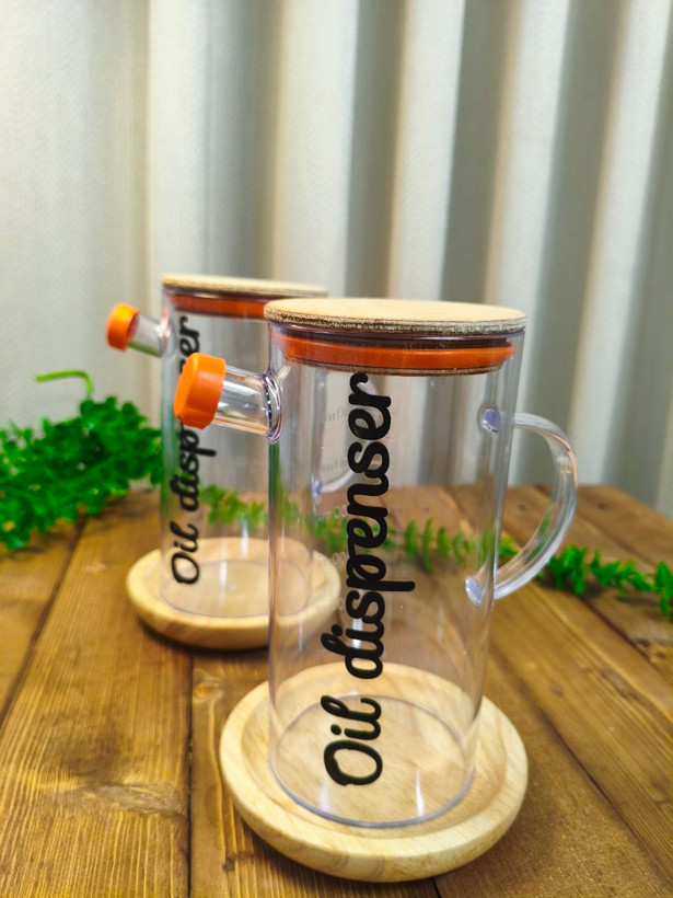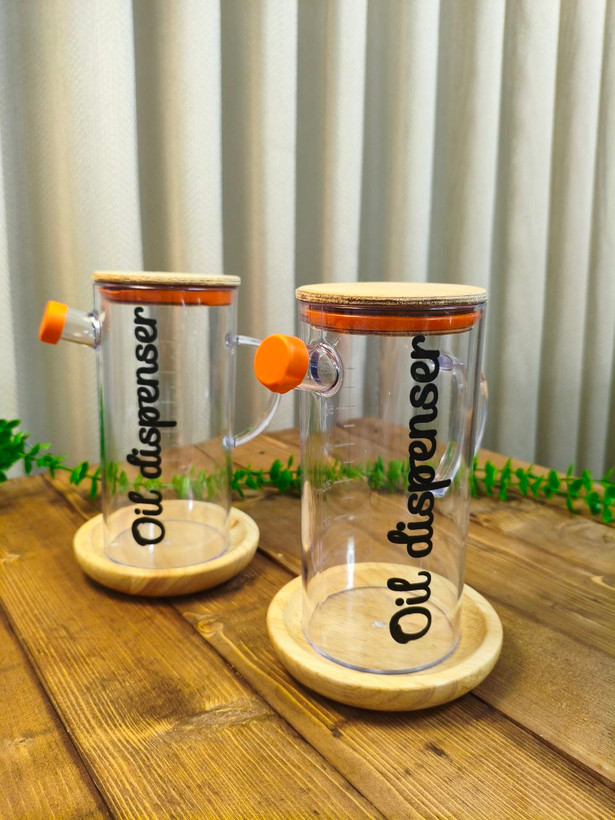 روغن ریز آکریلیک شفاف ۶۰۰ میلیلیتری، یک ظرف کاربردی و زیبا برای نگهداری و ریختن روغن مایع در آشپزخانه است. این محصول با بدنه شفاف اکریلیک مقاوم، دسته ارگونومیک، درب چوبی طبیعی (با واشر سیلیکونی نارنجی)، طراحی مدرنی دارد که هم کاربردی است و هم به دکور آشپزخانه جلوهای شیک میبخشد. نوشته "Oil dispenser" روی بدنه، آن را متمایز و حرفهای کرده است.
