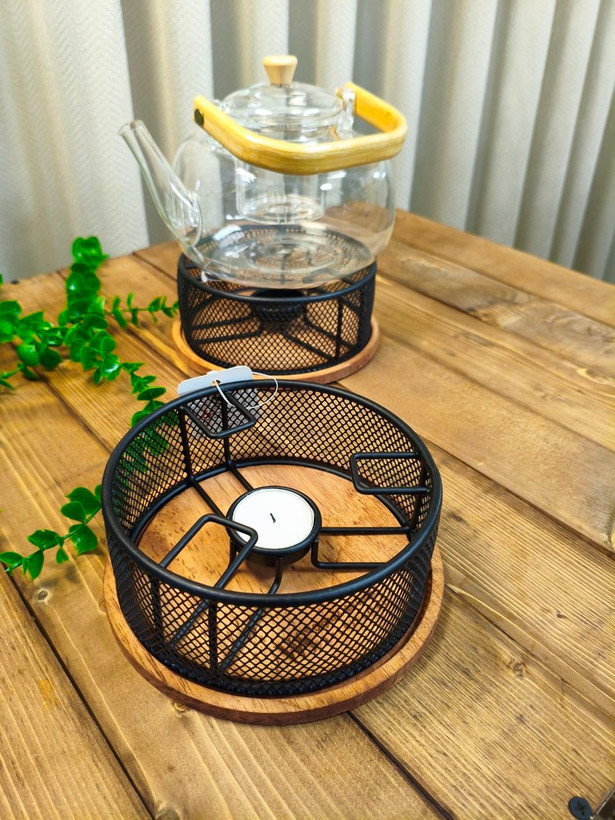 وارمر قوری استیل گرد مشکی، یک اکسسوری شیک و کاربردی برای گرم نگه داشتن چای یا دمنوش در قوریهای شیشهای و پیرکس است. این محصول با طراحی مدرن توری (مش) و رنگ مشکی مات، همراه با پایه چوبی طبیعی، جلوهای زیبا و مینیمال به میز چای یا پذیرایی شما میبخشد. مناسب برای استفاده با شمع وارمر (تیلایت) که در مرکز قرار میگیرد و حرارت ملایمی تولید میکند.
