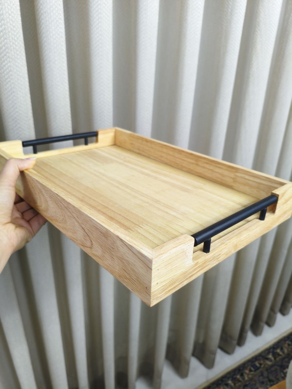 سینی چوبی رابروود با دسته فلزی، یک اکسسوری زیبا، مقاوم و کاربردی برای سرو غذا، صبحانه، چای یا دکوراسیون میز است. این سینی از چوب طبیعی رابروود (Rubberwood) ساخته شده که با رنگ روشن و رگههای طبیعی، ظاهری گرم و مدرن دارد. دستههای فلزی مشکی مات، حمل آسان و جلوهای صنعتی-مینیمال به آن میبخشد.
