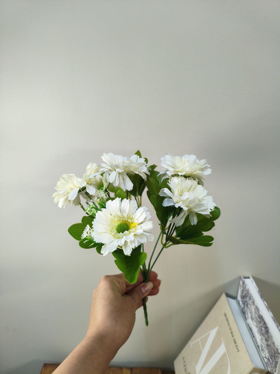 گل ژربرا سفید مصنوعی 6شاخه