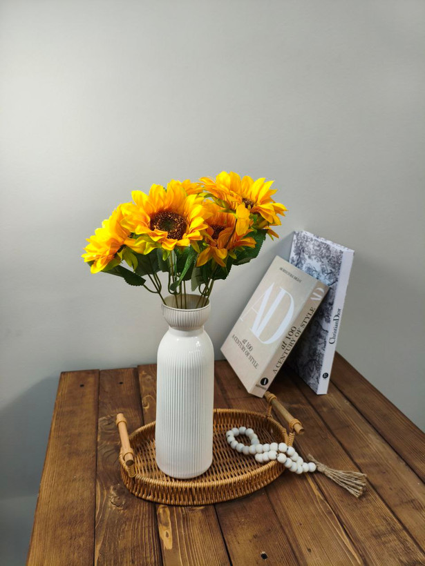 گل آفتابگردان با گلهای بزرگ و زرد طلایی و مرکز قهوهای، نمادی از انرژی، شادی و گرماست. این گل زیبا علاوه بر زیبایی طبیعی، برای تزئین باغ، خانه، دستهگل و حتی هدیه دادن عالی است و با دوام مناسب، جلوهای شاداب و دلنشین به محیط میبخشد.