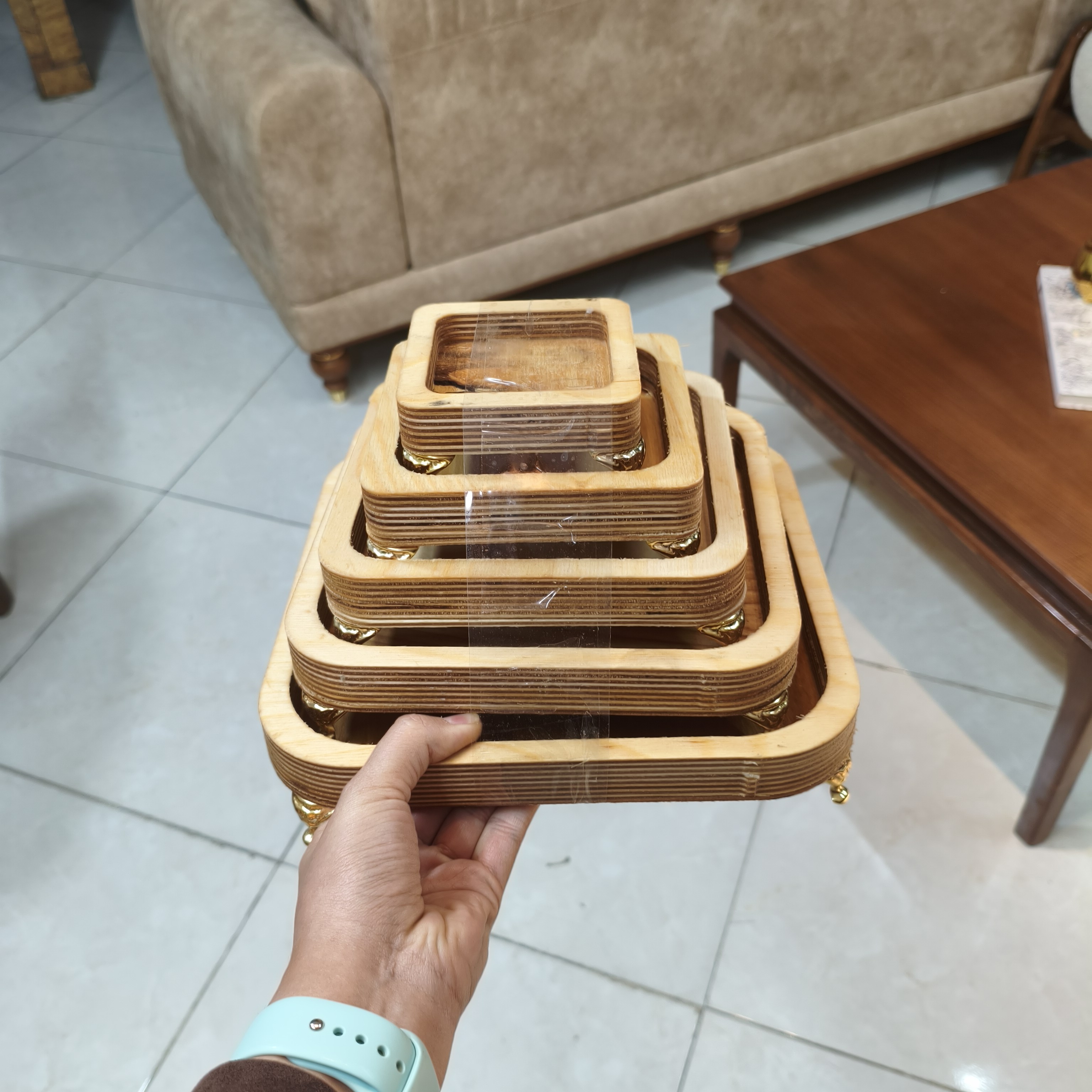 گاهی یک ست ساده اما باکلاس میتواند میز پذیراییتان را کاملاً دگرگون کند. این مجموعه ۵ تیکه سینی چوبی دقیقاً همین کار را میکند: ترکیب چوب گرم با بافت طبیعی + پایههای برنجی طلایی براق = ظاهری لوکس، مدرن