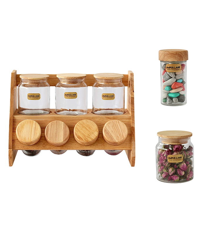 🧂 ست جا ادویه ۷ پارچه امپرلند مدل راشا با استند چوبی