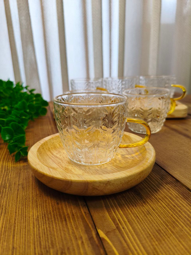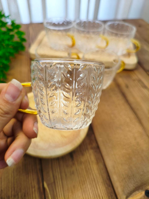 فنجان طرح گندم دسته طلایی
