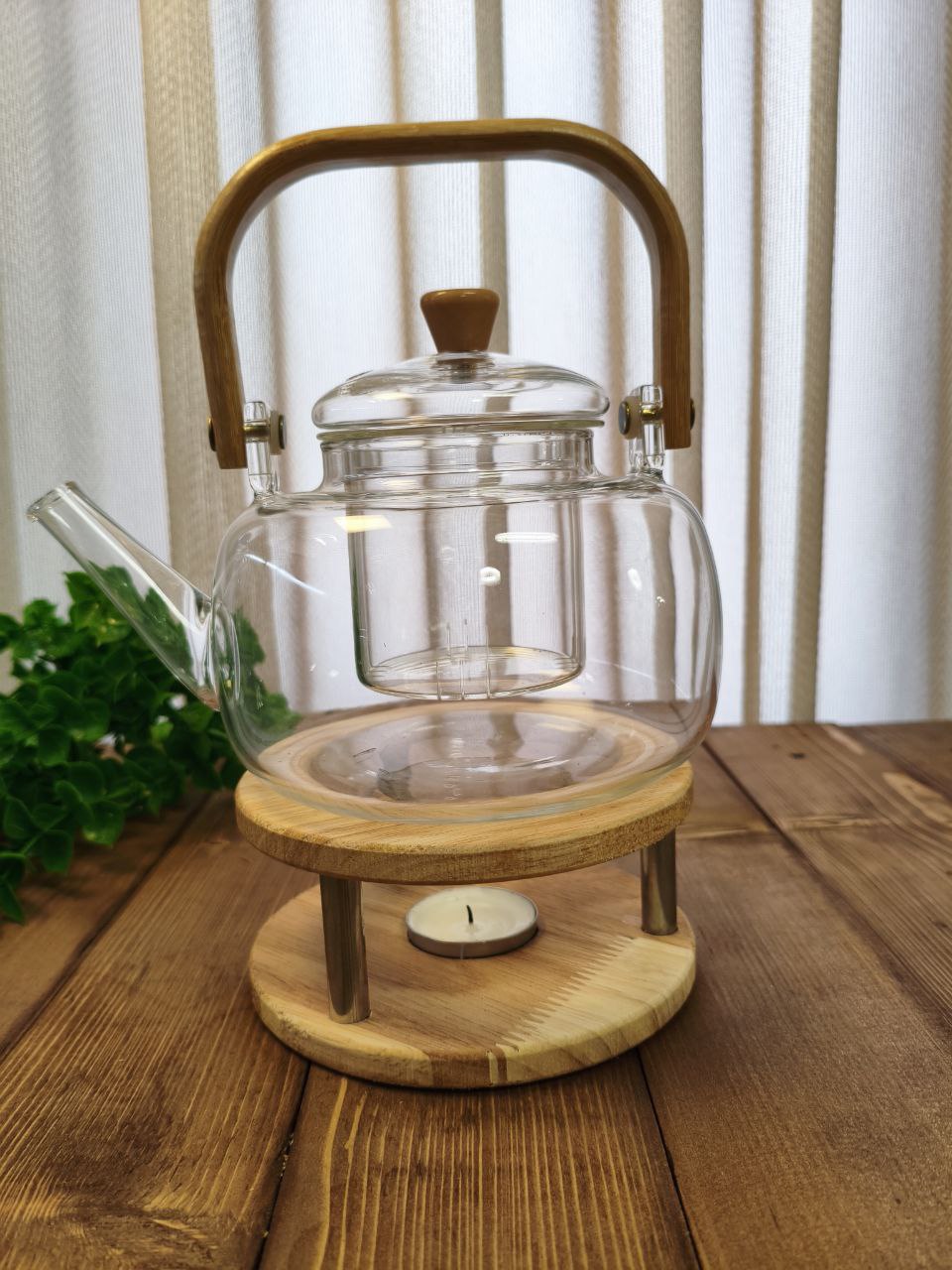 وارمر چوبی لوکس با پایه استیل – گرمکن قوری و دمنوش