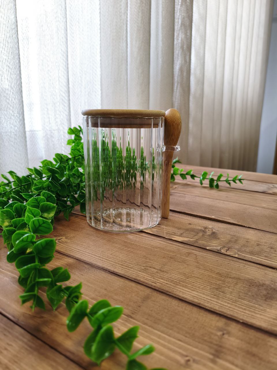 درب: چوب بامبو طبیعی با واشر سیلیکونی برای آببندی کامل و حفظ تازگی مواد داخل ظرف.