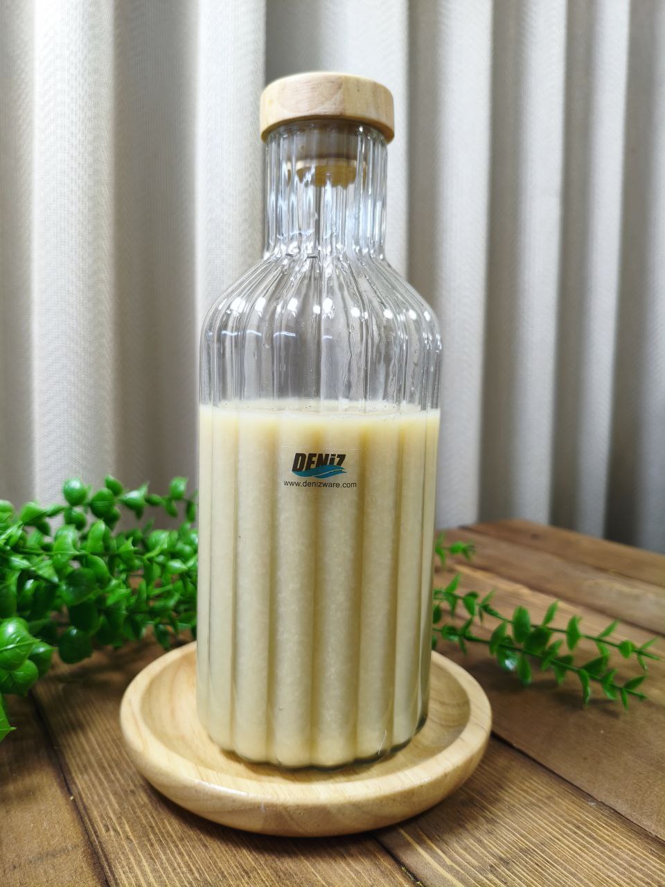 بطری آب و شربت شیشهای شیاردار درب بامبو دنیز بطری آب کنار تخت (شب راحت آب بخور) پارچ شربت، لیموناد، موهیتو، دتاکس واتر بطری شیر، شیرکاکائو، آبمیوه طبیعی
