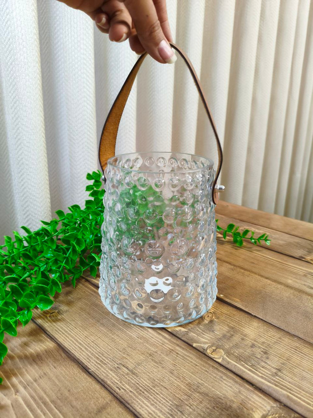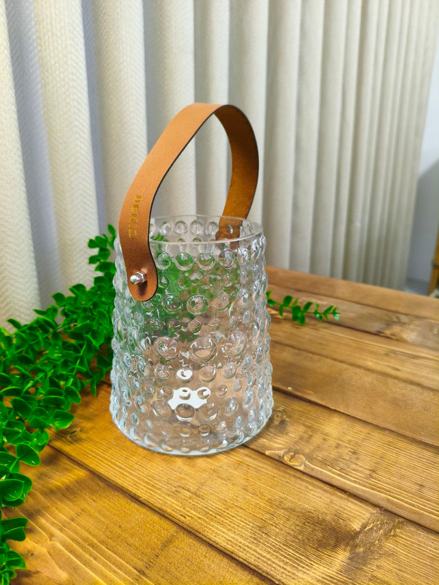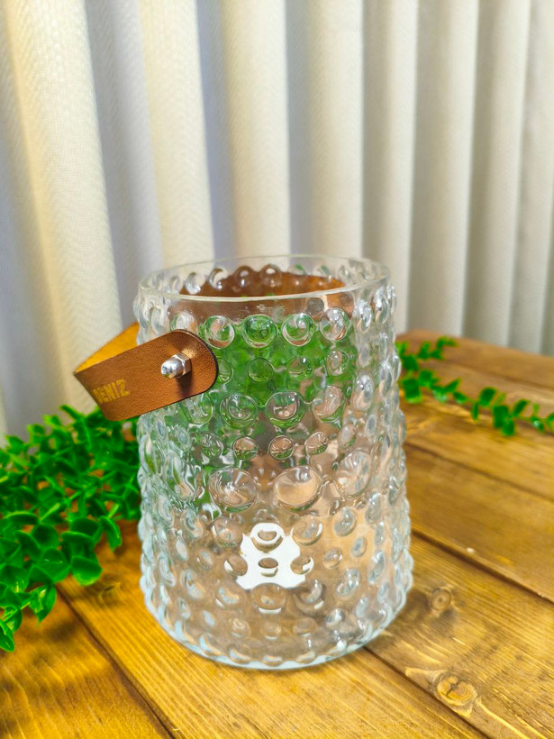 با دسته چرم طبیعی آویزونش کن یا بذار رو میز، گلهای کوچیک، کاکتوس،حتی برگسبز مصنوعی توش فوقالعاده قشنگ میشه!