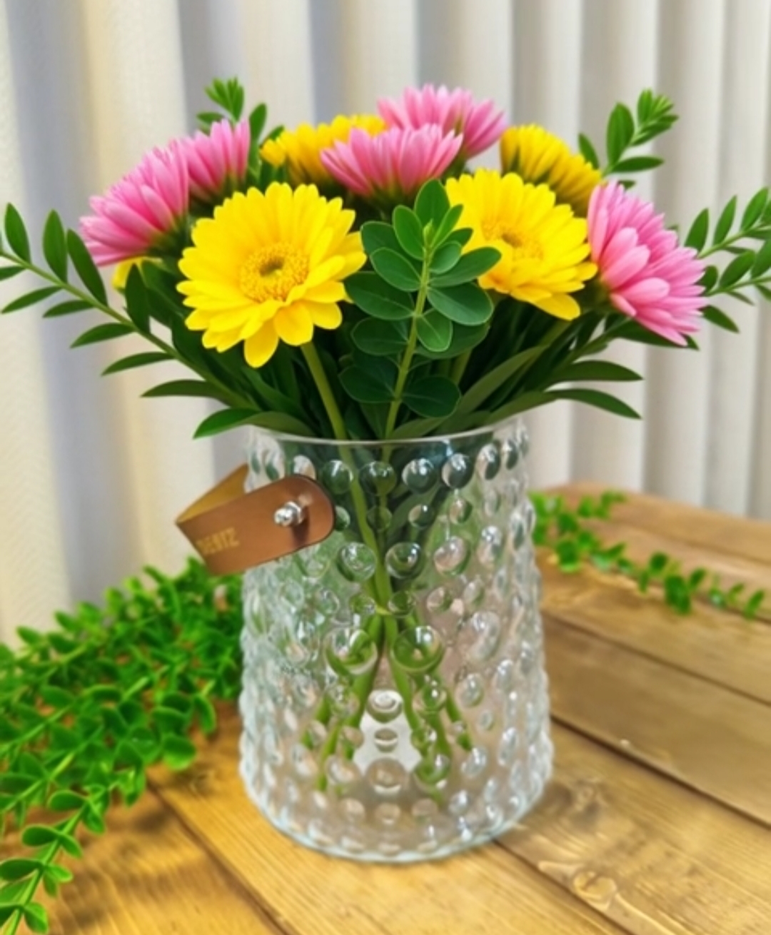 با دسته چرم طبیعی آویزونش کن یا بذار رو میز، گلهای کوچیک، کاکتوس،حتی برگسبز مصنوعی توش فوقالعاده قشنگ میشه!