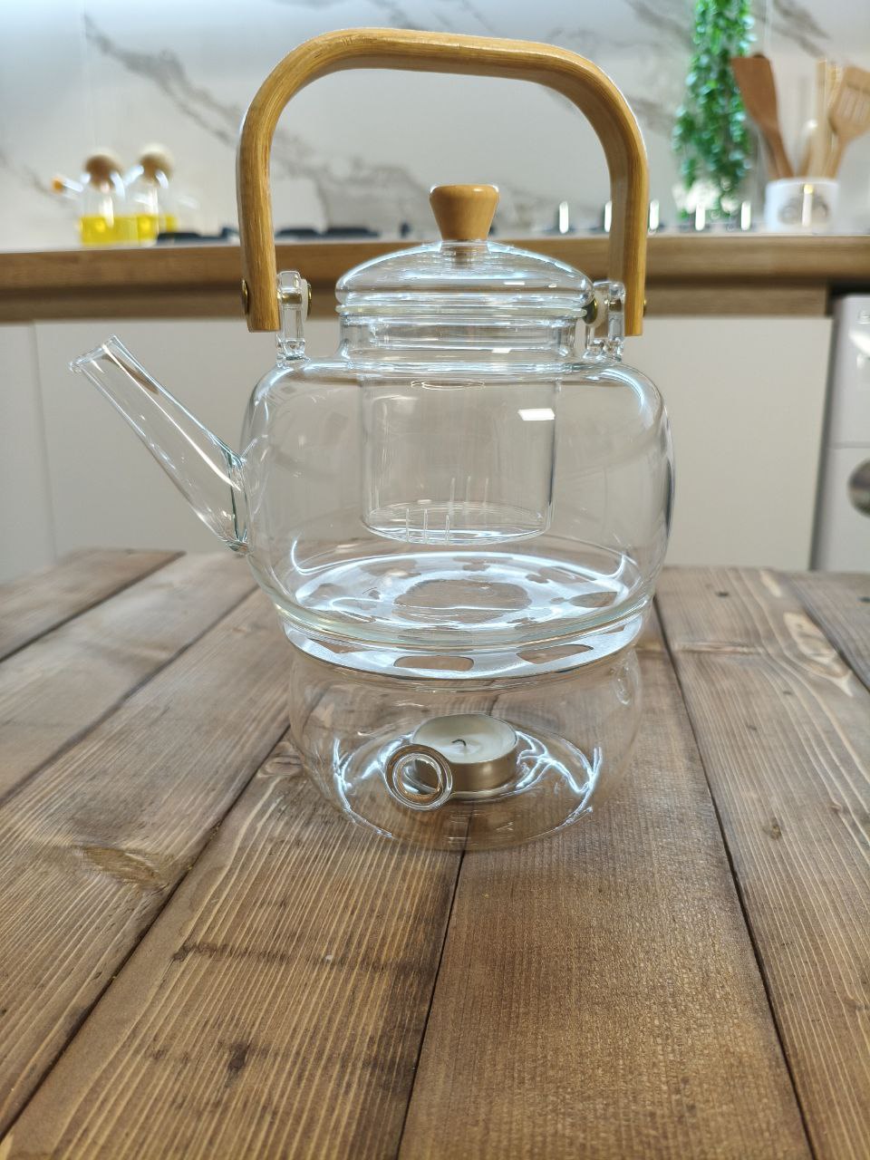 کاربرد: با روشن کردن یک شمع وارمر زیر آن، حرارت ملایم و یکنواخت به قوری منتقل میشود و چای یا دمنوش برای مدت طولانی گرم میماند. بسیار مناسب برای مهمانیها، دورهمیها و استفاده روزانه با استایل مینیمال و شیک.