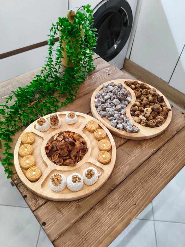 اردوخوری چوبی گرد یکی از کاربردیترین و شیکترین انتخابها برای سرو پذیرایی است. این محصول از چوب طبیعی با کیفیت بالا ساخته شده و بهدلیل طراحی چندخانه، برای سرو انواع تنقلات، آجیل، خشکبار، میوه، شیرینی و دسر کاملاً مناسب است. لبههای کار دقیق پرداخت شده و عمق هر خانه بهگونهای طراحی شده که مواد خوراکی بهخوبی داخل آن قرار بگیرد.