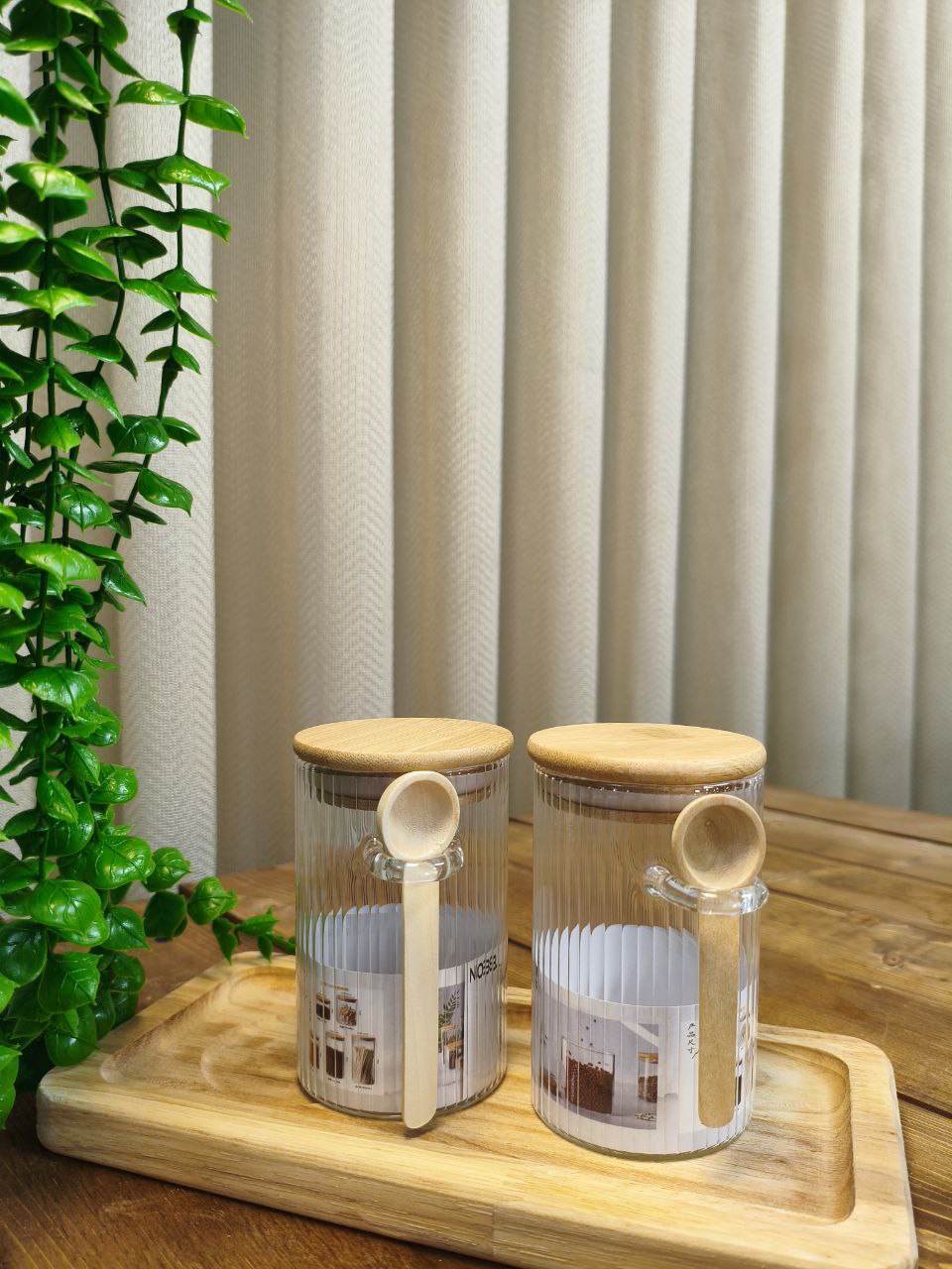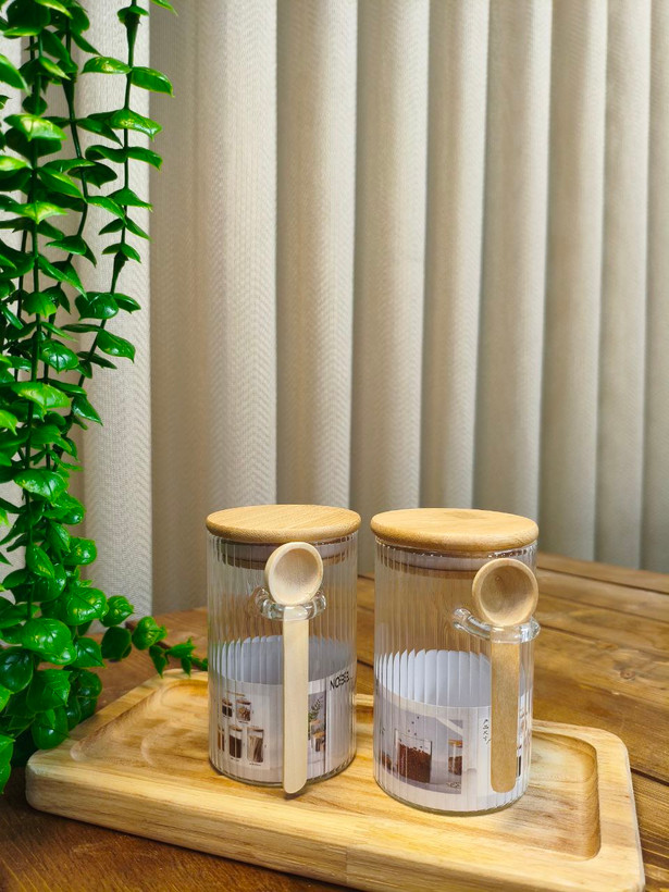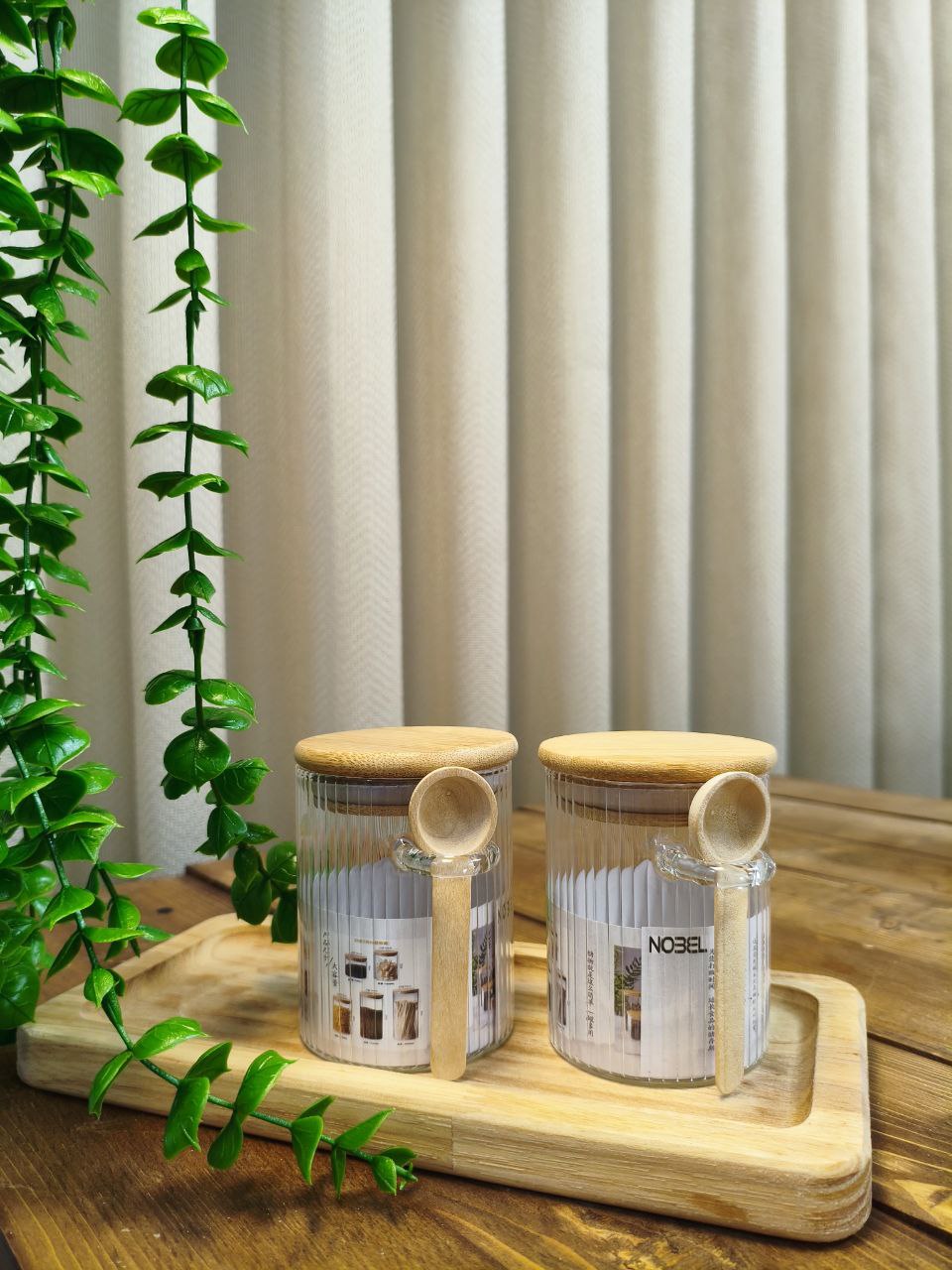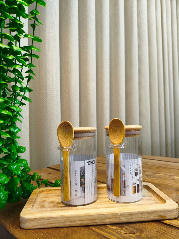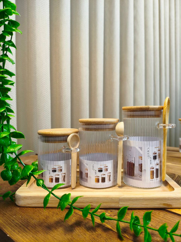 این ست زیبا شامل سه بانکه شیشهای شیاردار در سایزهای کوچک، متوسط و بزرگ است که هر کدام مجهز به درب چوبی بامبو با واشر سیلیکونی کیپشونده و قاشق چوبی متصل هستند. طراحی شیاردار بدنه شیشهای، ظاهری مدرن و لوکس به محصول بخشیده و همراه با سینی چوبی بامبو، جلوهای شیک و منظم به آشپزخانه یا میز شما میدهد.