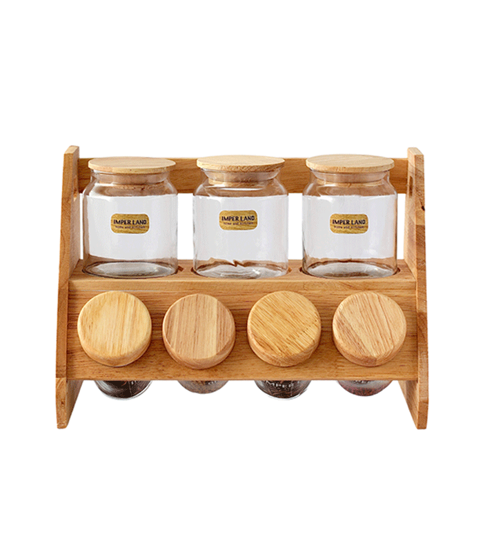 ست جا ادویه 4 تایی کوتاه زیر چوبی دنی هوم